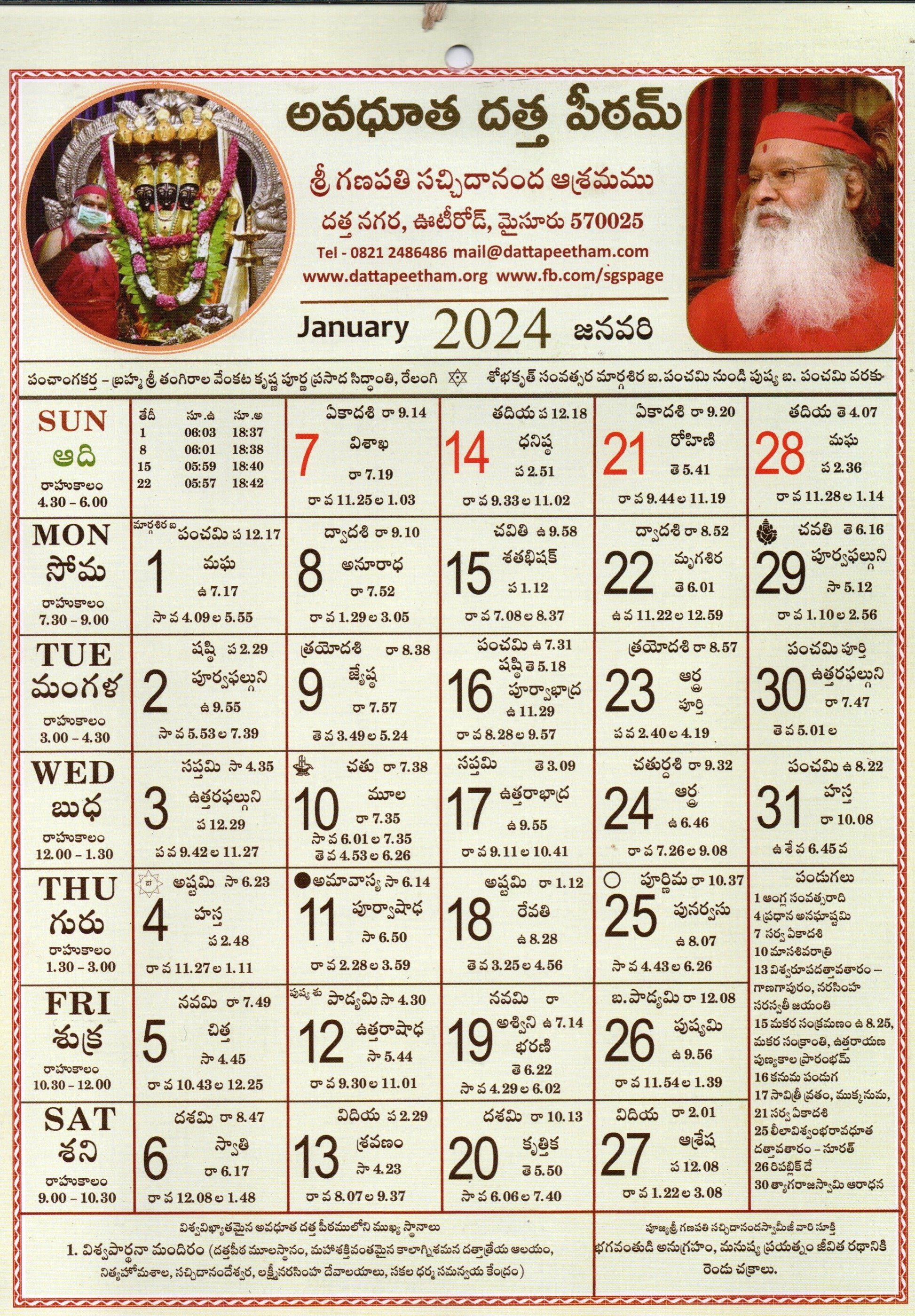 Dattapeetham Calendar 2025 (Telugu) – Raga Ragini Store